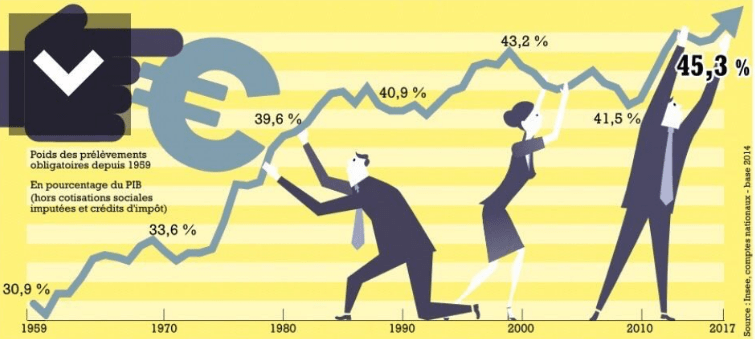 Pour financer son modèle social, la France ne cesse d’augmenter les taux de prélèvement obligatoire. En 2018 ce taux grimpait à 48,4% du PIB !